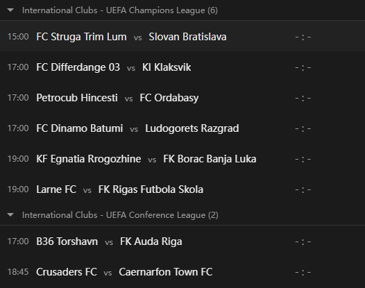 3. A list of matches shows, which are nearing KICK OFF is displayed