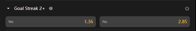 Predict if any teams will score 2 or more goals in a row. *Full Time.