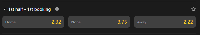 Away bet wins if Away team is given the Nth booking at the 1st half.