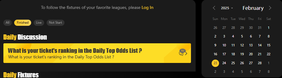 4. Go to the match Calendar on the ''Finished'' page. select the date for the match you want