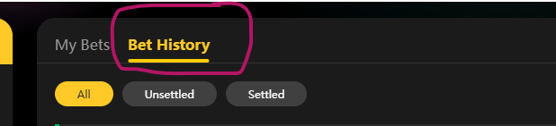 9. Click on "Bet History."