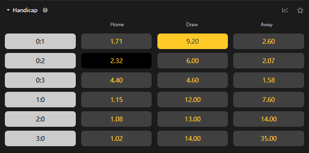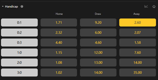 - Away bet wins if Away team wins with at least 2 goals difference.