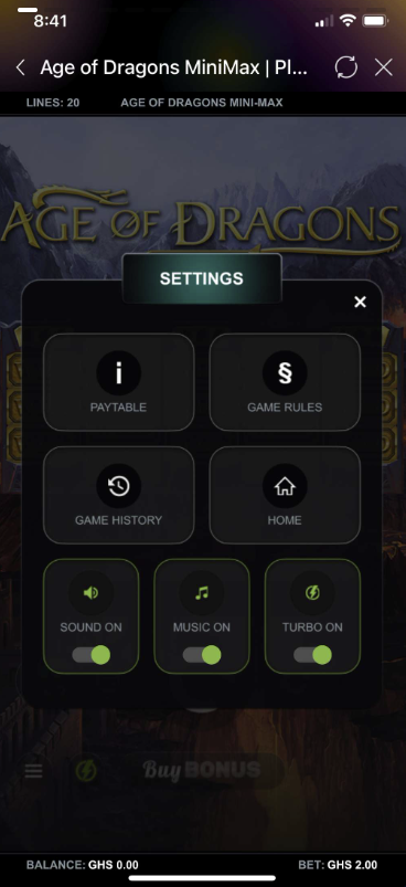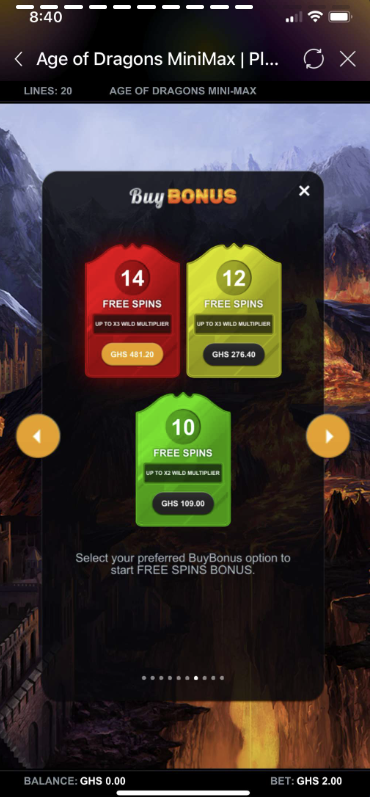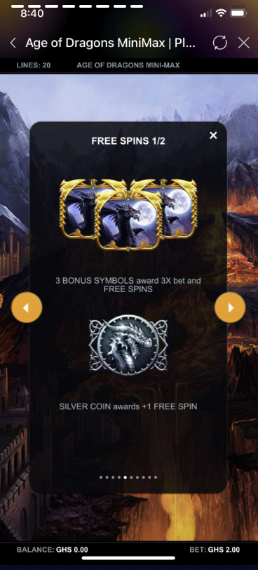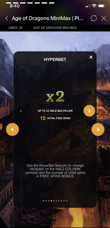 Ages of Dragon is Mini-Max is a 4 reel, with 20 lines, offering action-packed features like Free Spins, Bonus Spins, and Symbol Collection.