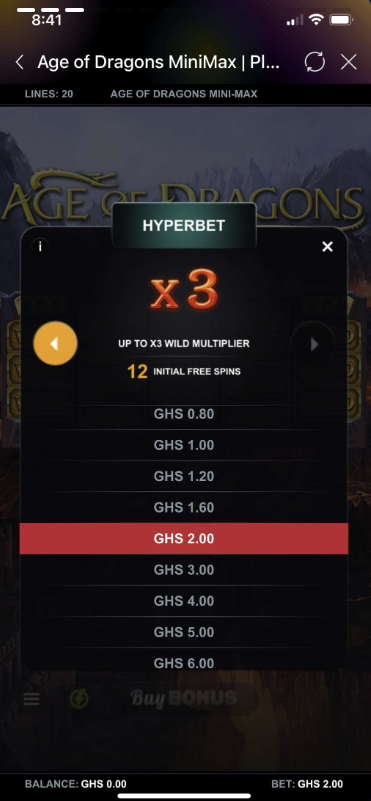 Players can choose between two HyperBet levels, which influence both multipliers and free spins: