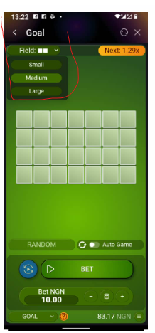 You can tap on the Field button to change the size of the field from small to medium and to large