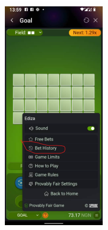 TO CHECK ON BET HISTORY