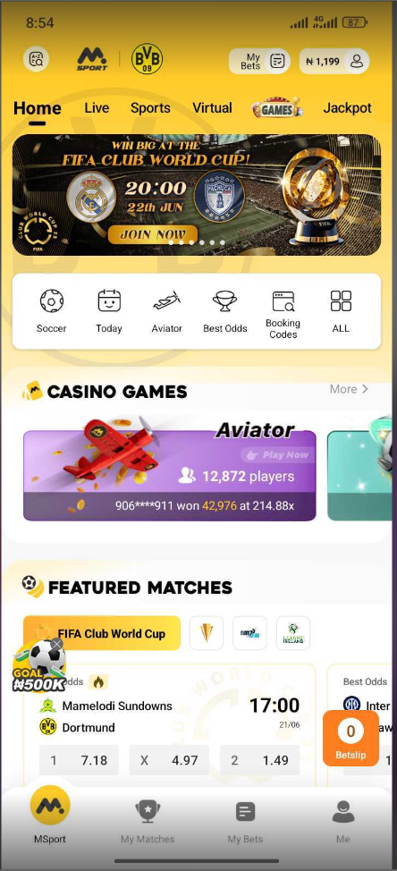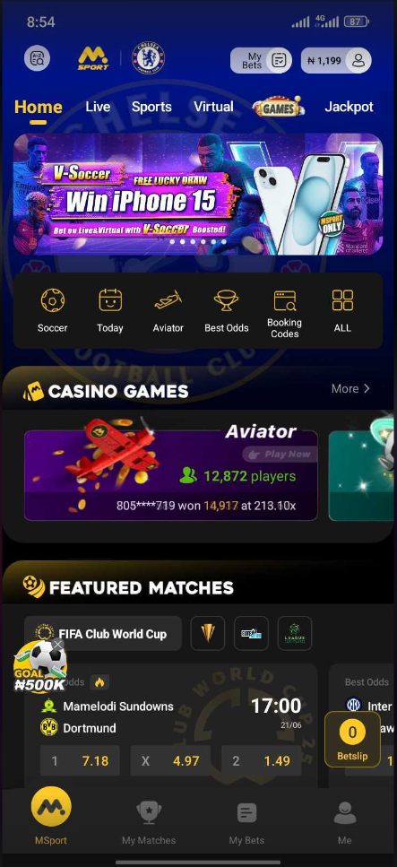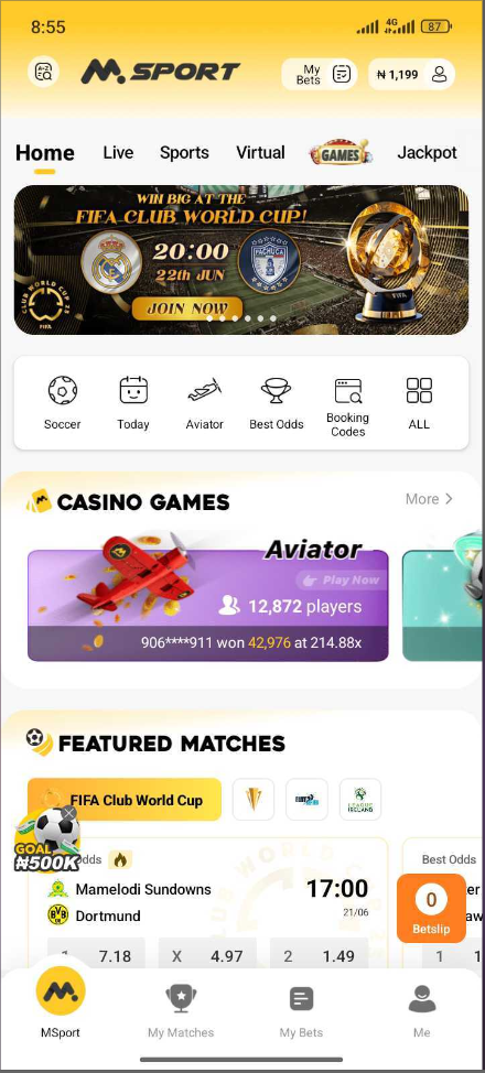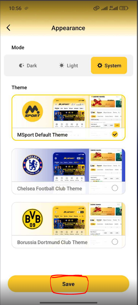 Appearance have to do with the physical look or aesthetic of the app, to change the Msport app appearance, kindly follow the steps below.
