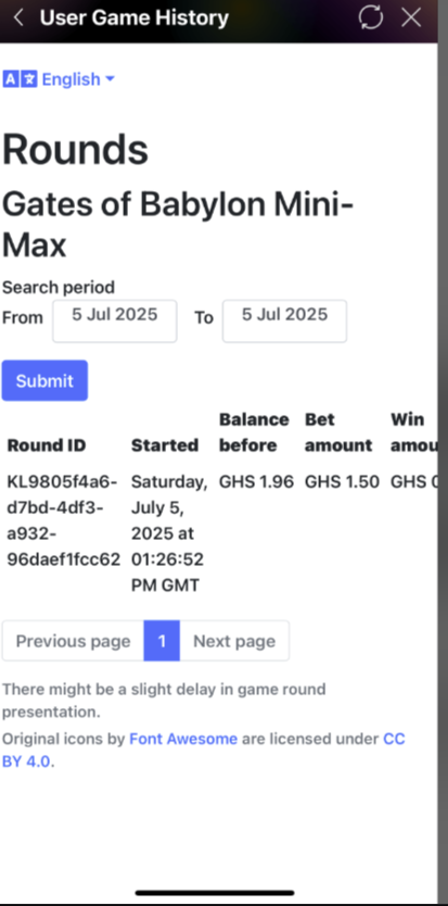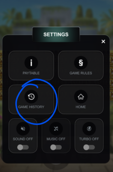 Checking Game History - Navigate to SETTINGS β GAME HISTORY to review past spins and wins.