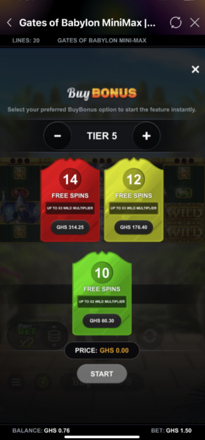 - Maximum gamble win: GHS 5,000.00.