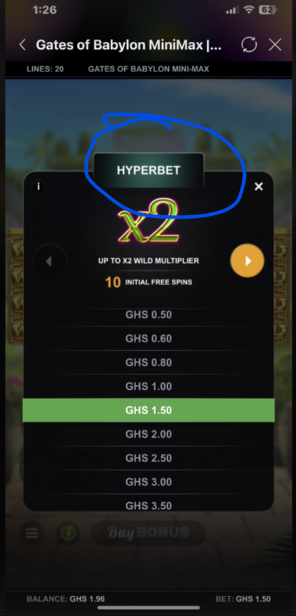- The total bet (e.g., GHS 2.00) is displayed at the bottom of the screen.