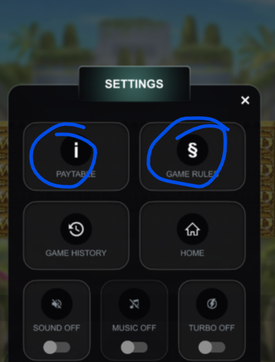Accessing Paytable & Rules - Paytable: