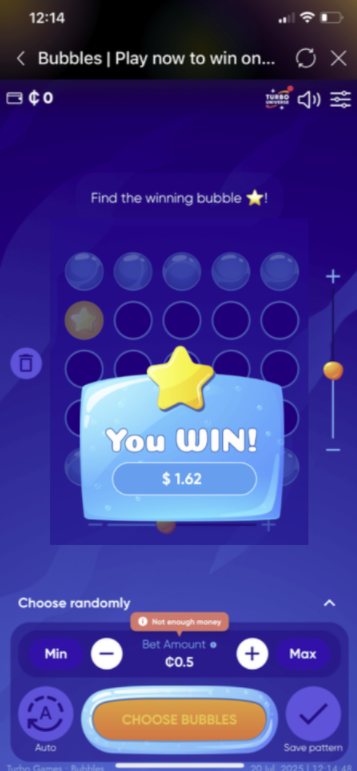 Tap the bubbles you want to pop. The fewer bubbles you choose, the bigger your possible win!
