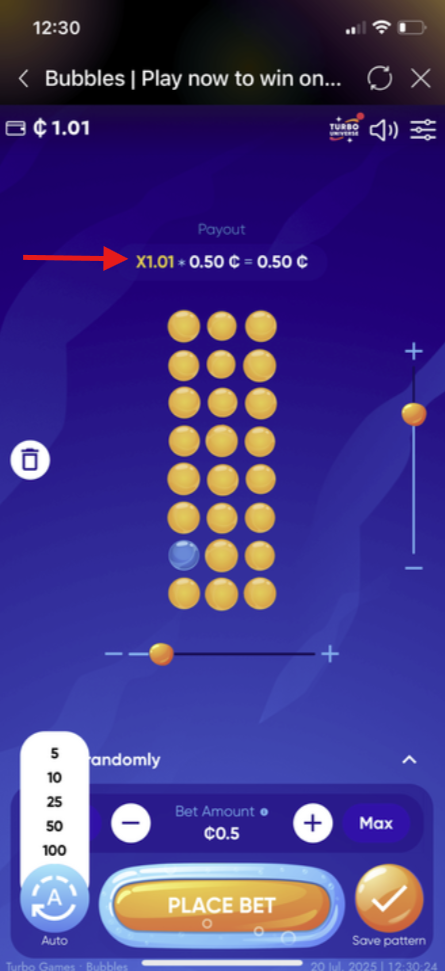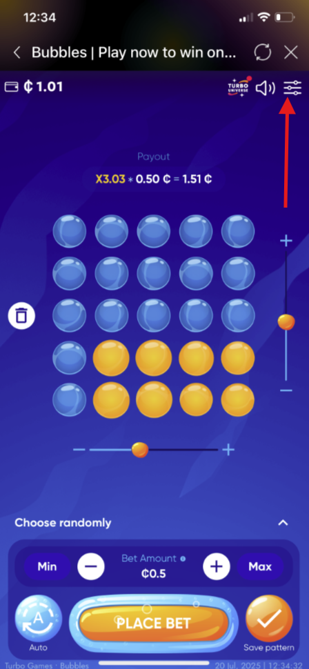 In the upper right corner of your game screen, you’ll find the settings icon and navigate to My Bets – a quick view of past outcomes to help you track patterns and possibly improve your chances.