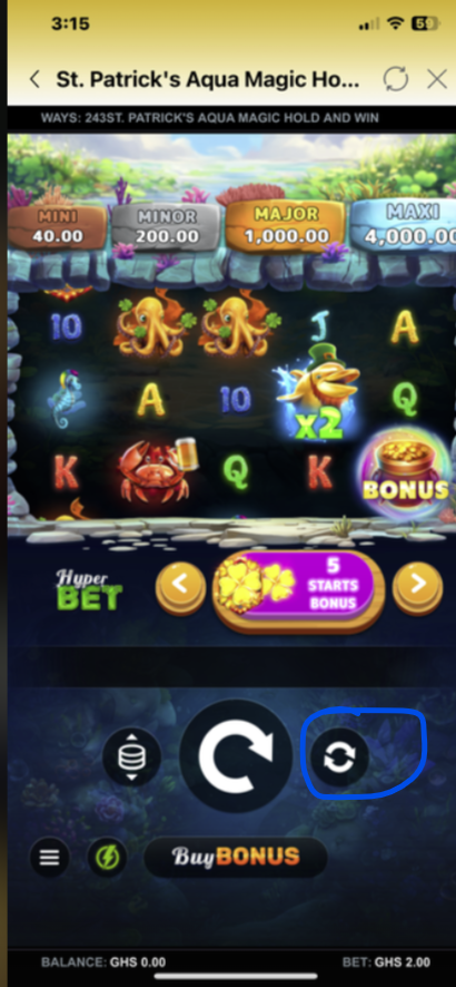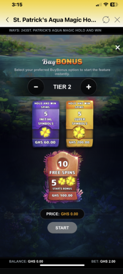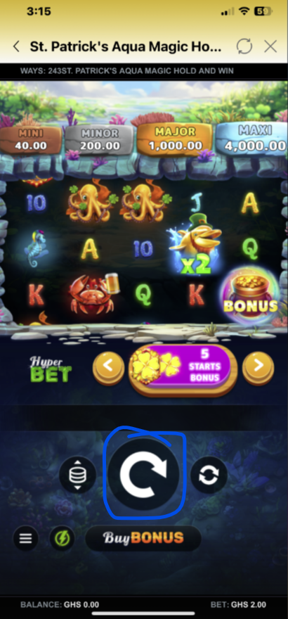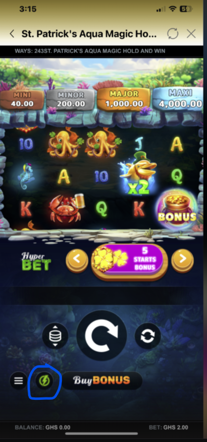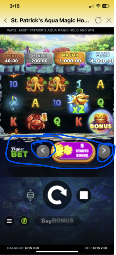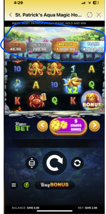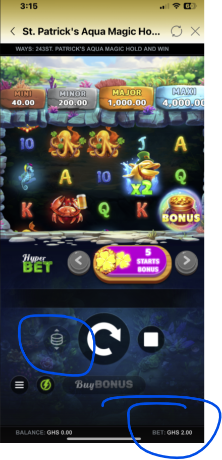 - The total bet (e.g., GHS 2.00) is displayed at the bottom of the screen.