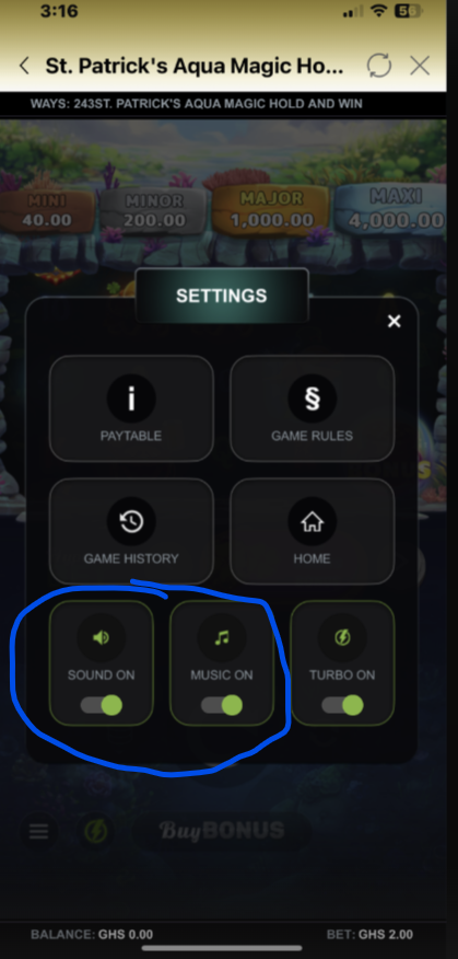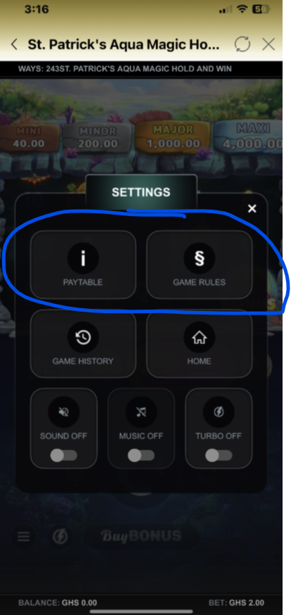 - Access Settings: Tap the SETTINGS ICON on the game display.