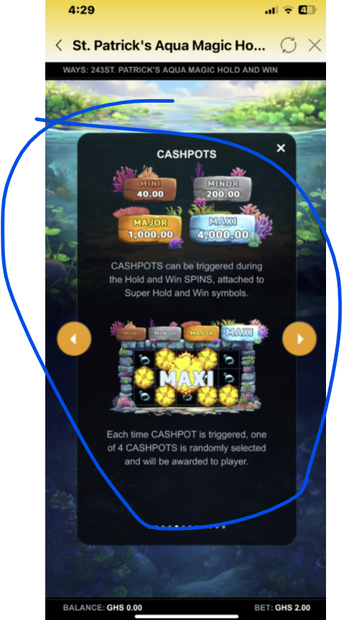 - When triggered, one of the 4 Cashpots is randomly awarded.