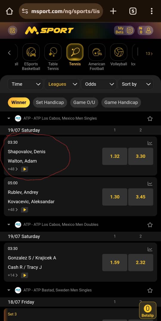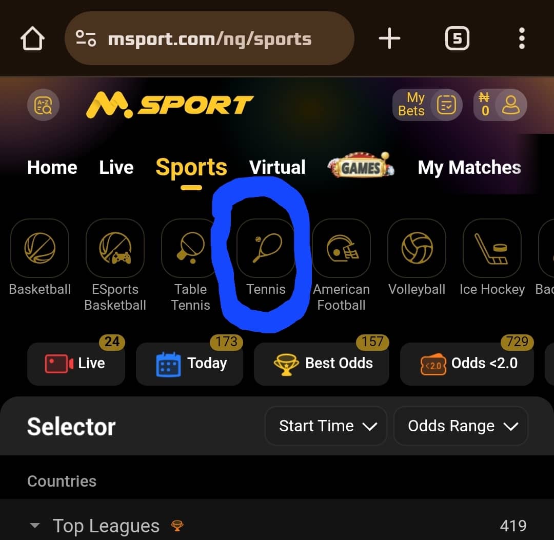 Scroll to Tennis and click on it to select the particular game you want to place on and click on the game