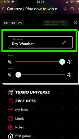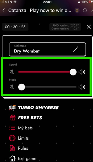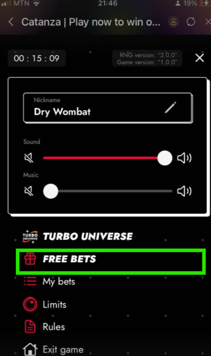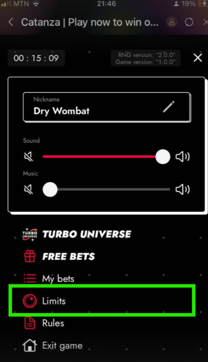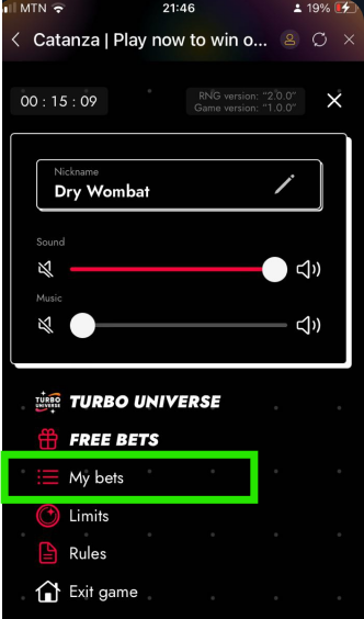 1. On the Catanza game page displayed, click or tap on the on the Settings icon at the right top corner on your Catanza game page.