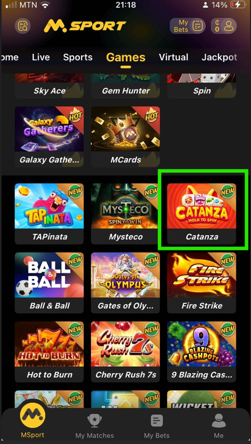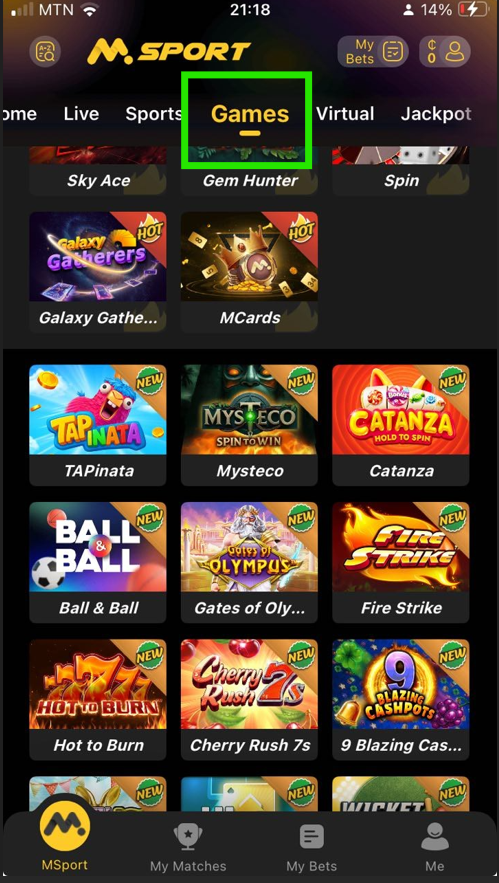 1. On the platform in your account, Click on the “Games” on the grid menu list at the top of the page