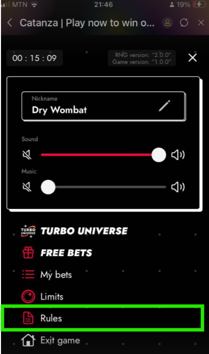 To know the rules of the catanza game, , Please go to the same settings Icon and on the next page, you will see Rules. Please tap on the Rules to see all that governs the games.