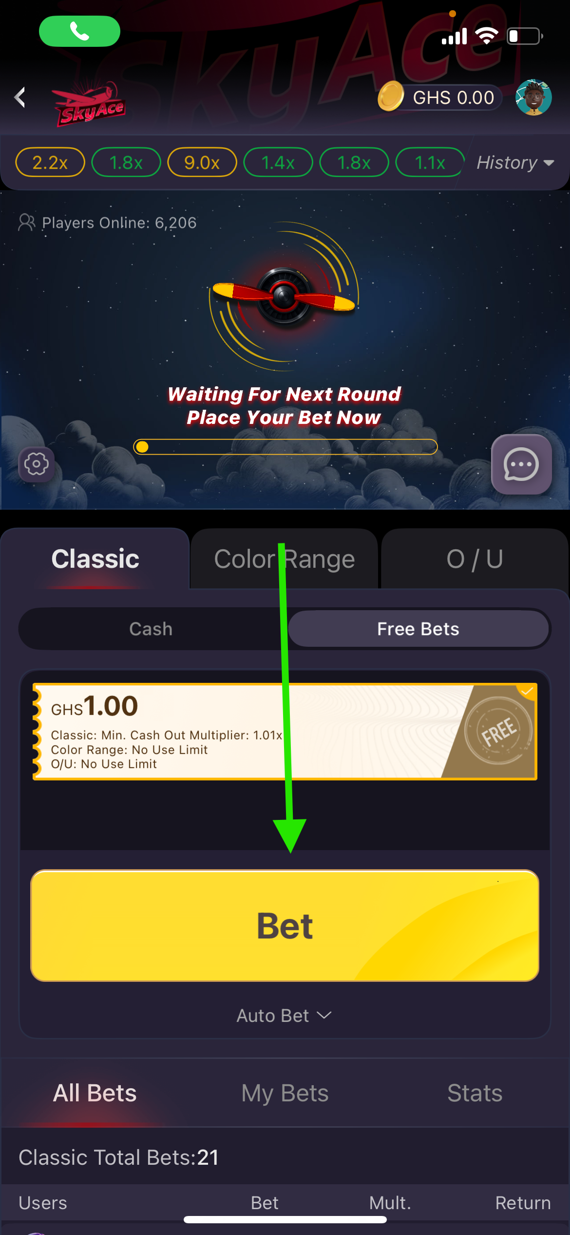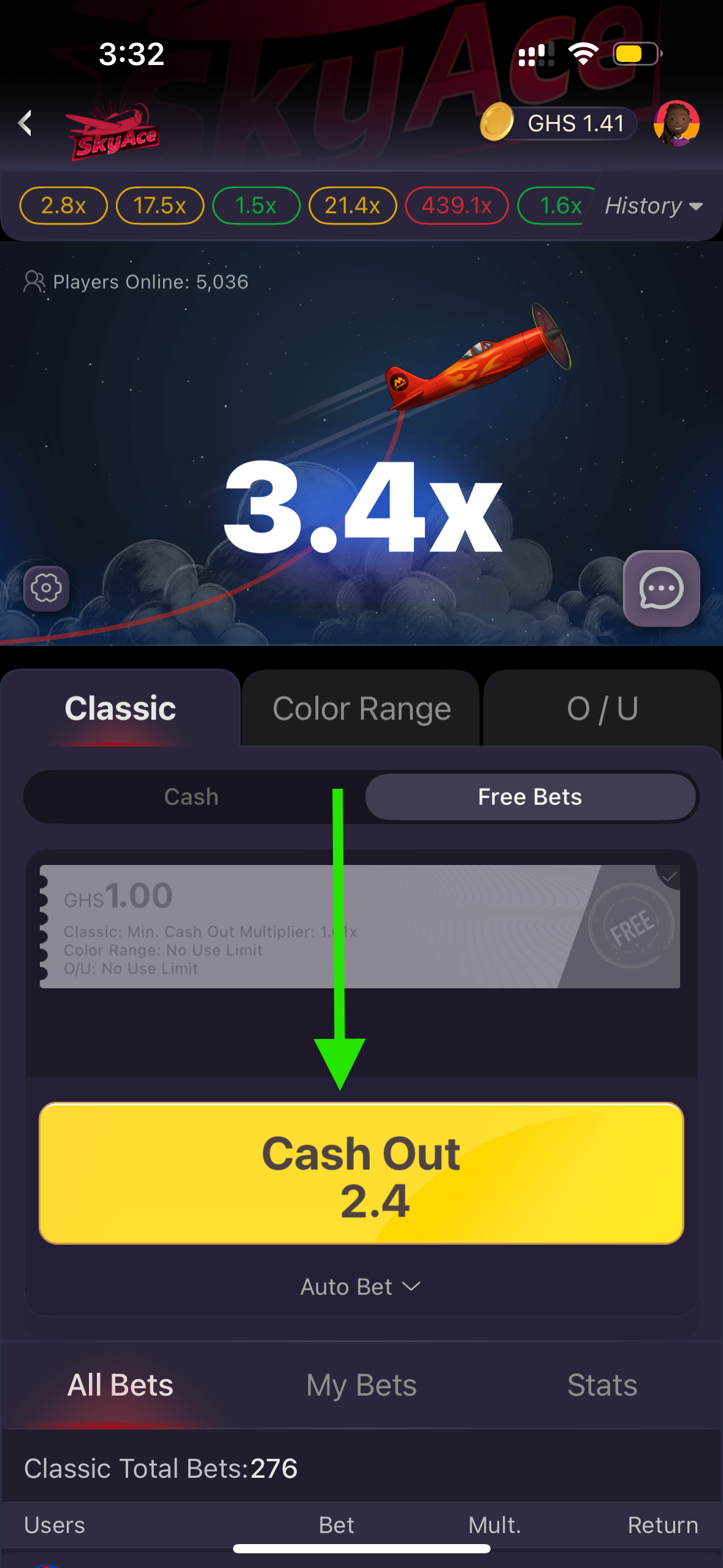 Example: If your free bet has a 2.00x condition, you’ll only be able to cash out once the plane hits 2.00x or higher.