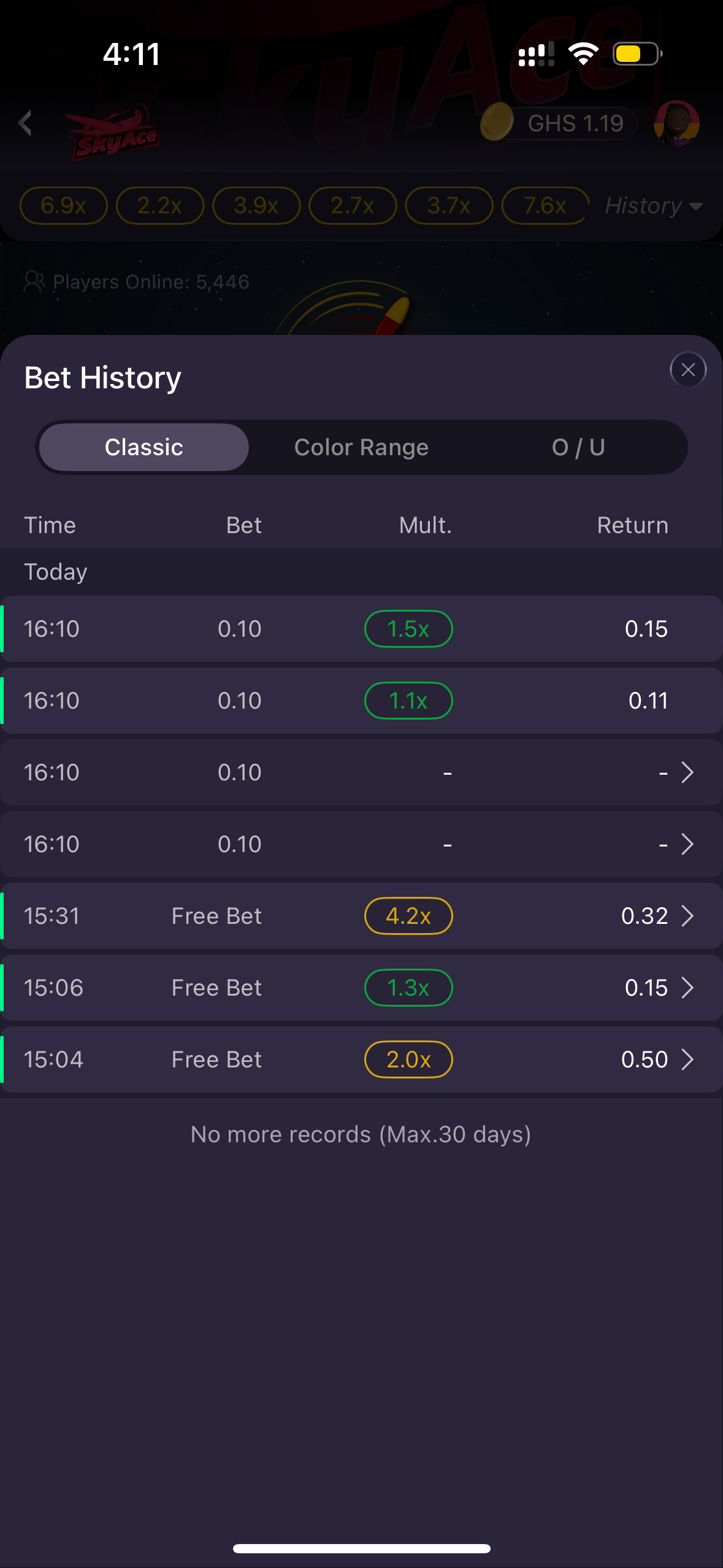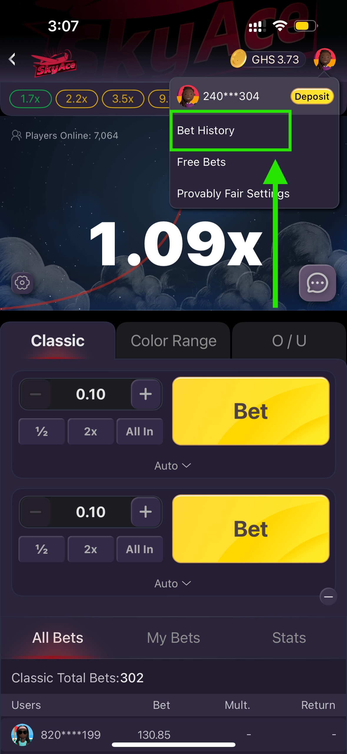 Want to track your past bets in SkyAce? The Bet History feature lets you review all your wagers, wins, and cashouts. This helps you monitor your gameplay and manage your strategy better.