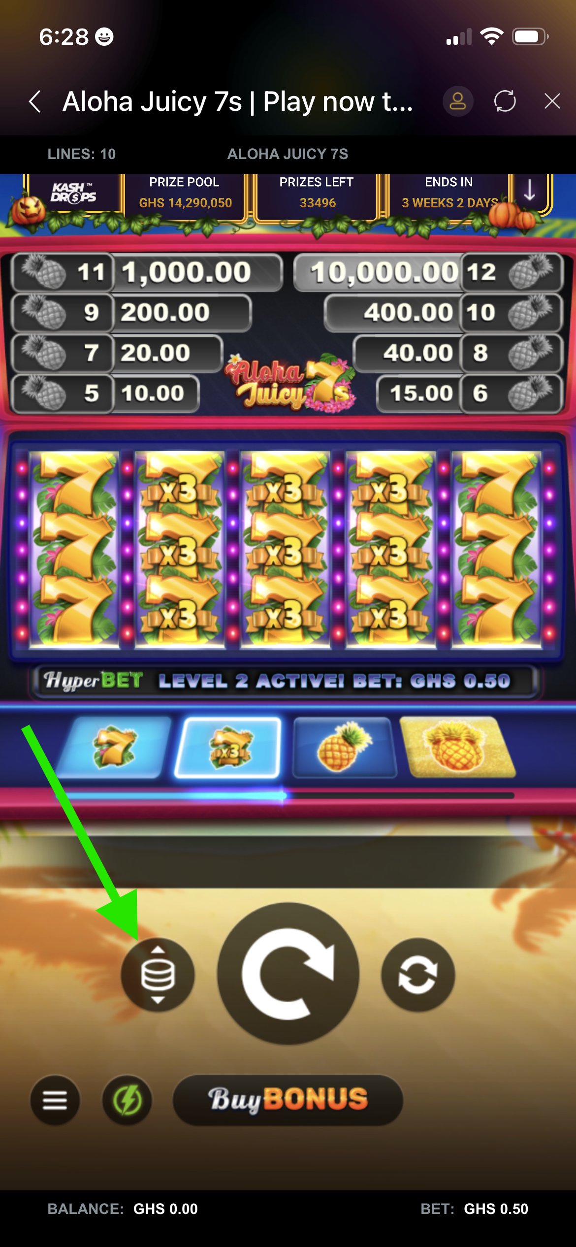 At this level, the Minimum stake is Gh0.5 and the Maximum stake is Gh6.25