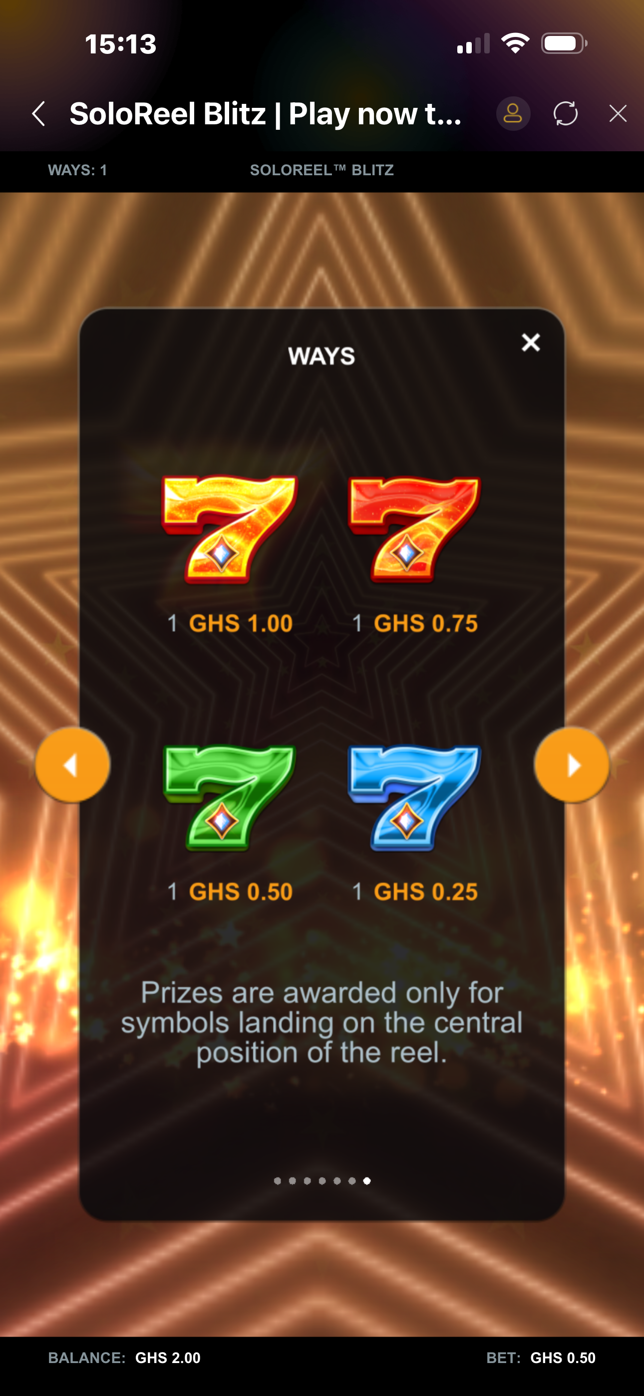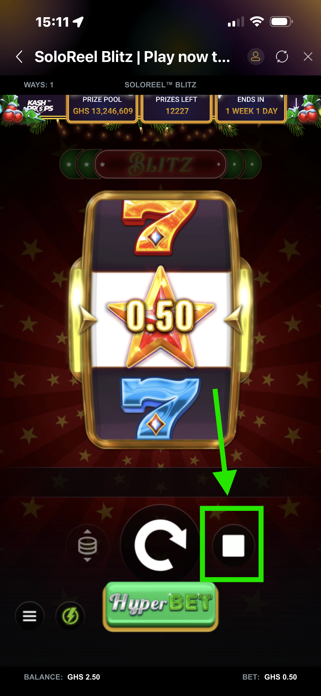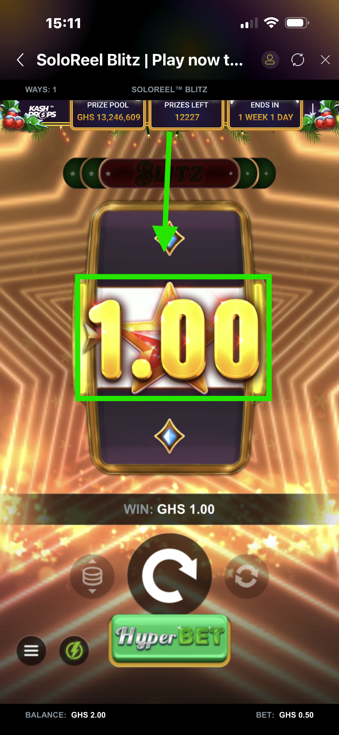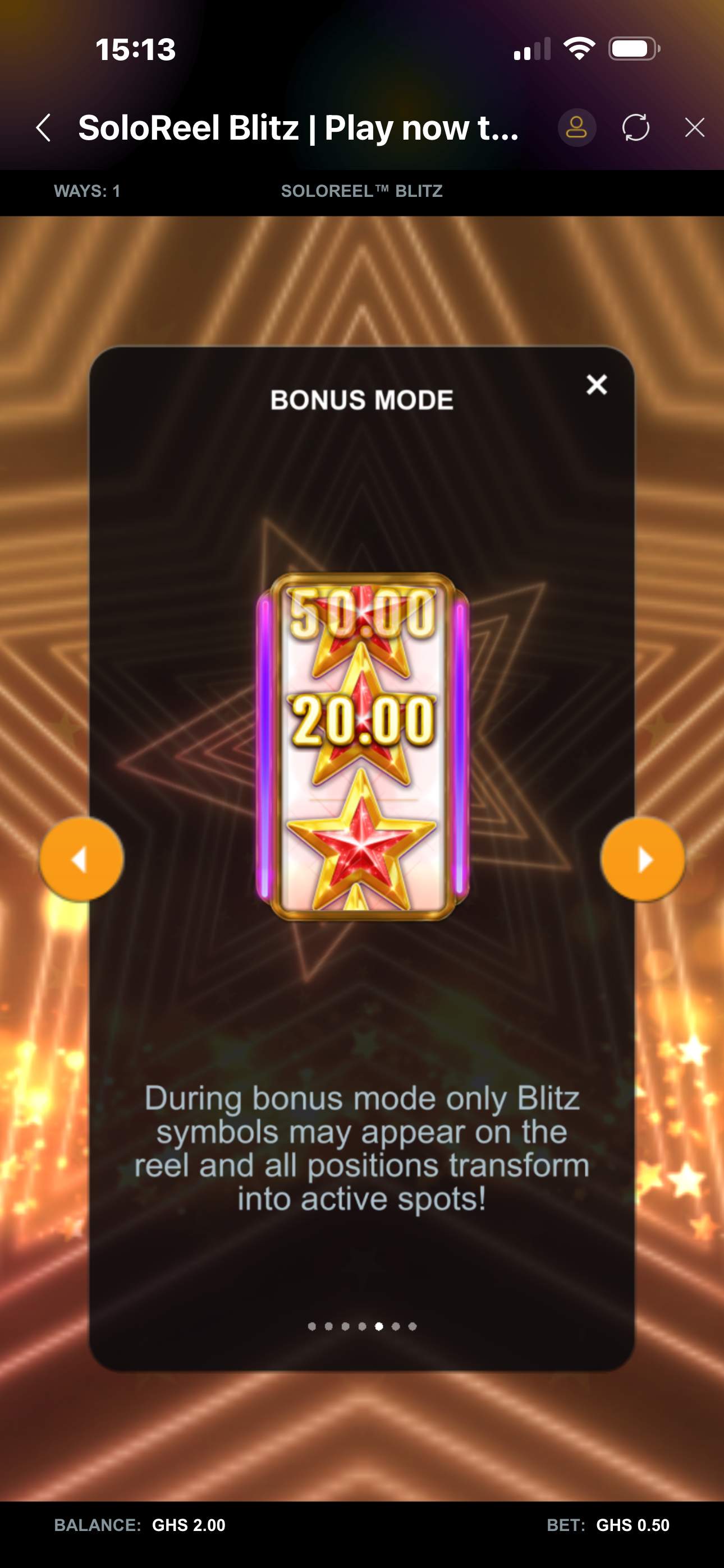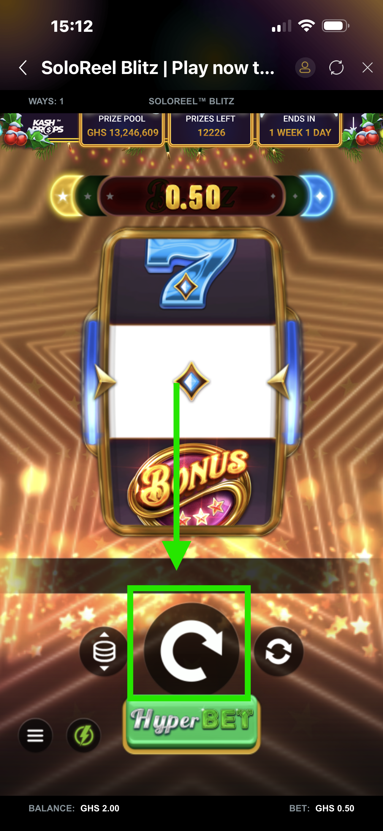 SoloReel Blitz is a 1-reel video slot game with 1 way, featuring Active Position, Blitz mode, Bonus Mode, and HyperBet.