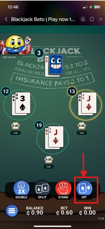 In Blackjack Beto, the game is set up for quick and easy play. Follow these sequential steps to play a round:
