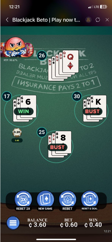 Blackjack Beto by OneTouch is a fast and easy digital version of the traditional card game. In this game, players compete against the dealer by having a hand value closer to 21 than the dealer's hand, without exceeding 21.