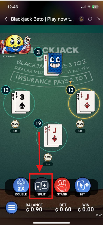 The player is allowed to Split a hand when its first two cards are a pair, allowing you to separate one hand into two separate hands. When you choose to Split, you place an additional bet equal to your original bet. You then play out each hand individually, with the option to Hit, Stand, Double Down, but cannot Split again.