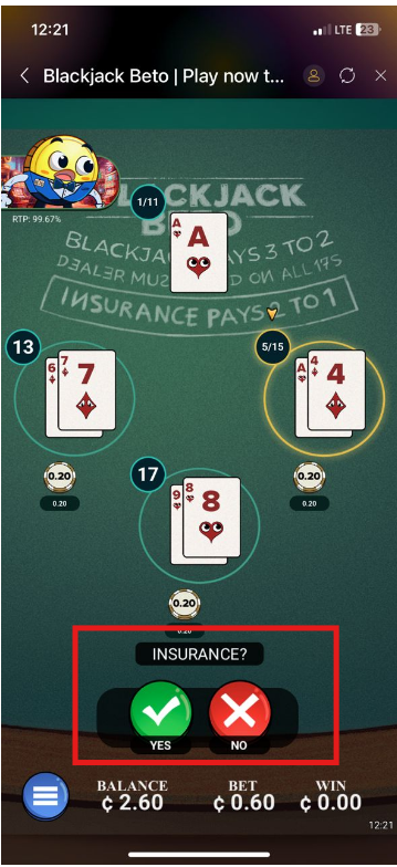 - Insurance is offered when the dealer has an Ace.