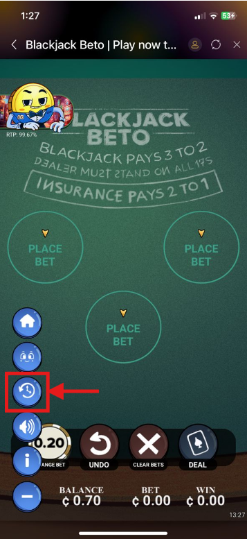 You can access your bet history through the main game interface using these steps: