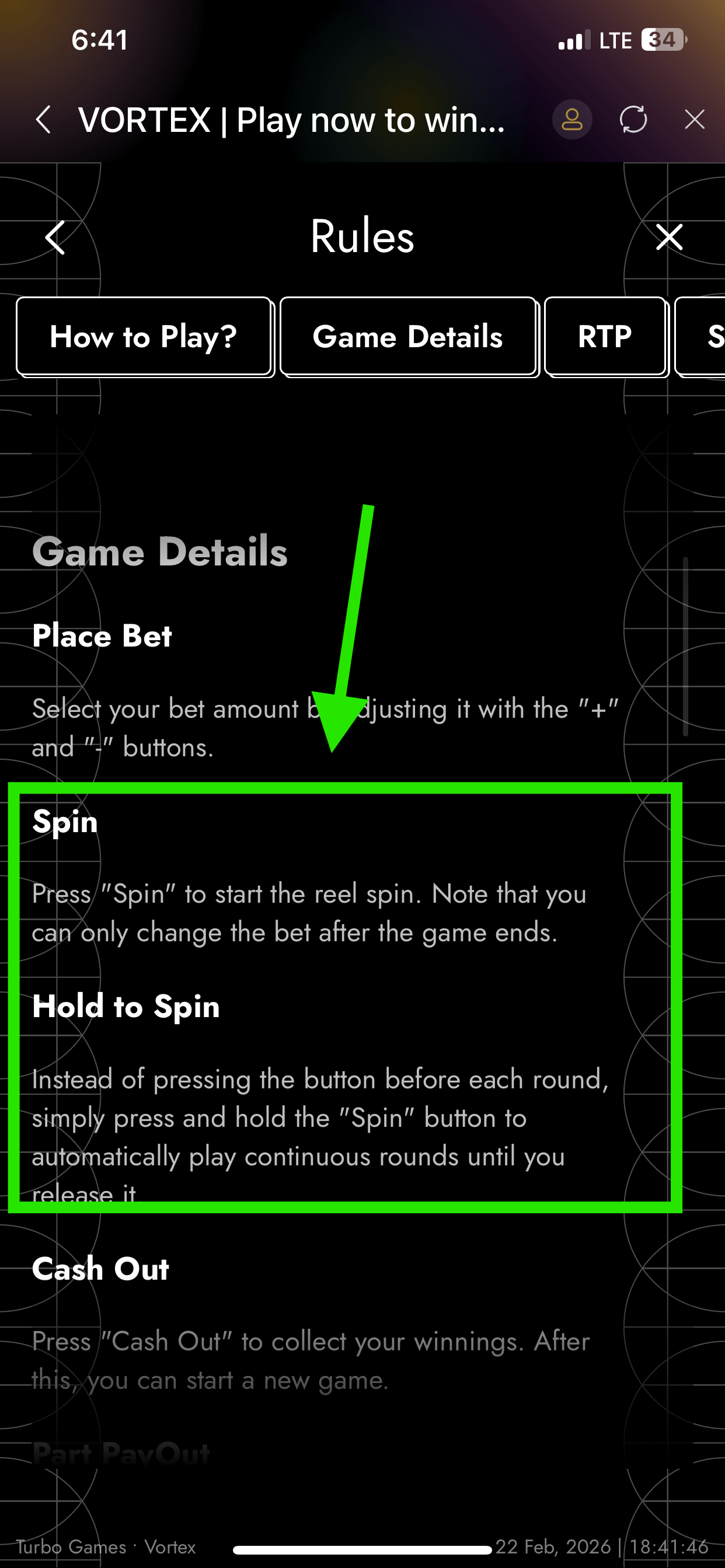 - Instead of pressing the button before each round, simply press and hold the "Spin" button to automatically play continuous rounds until you release it.