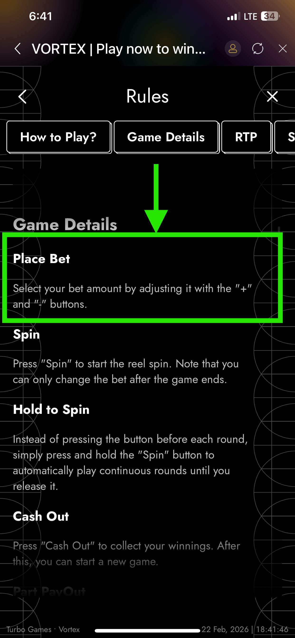 Rules: Access the Game Rules Page (How to play, Game Details)