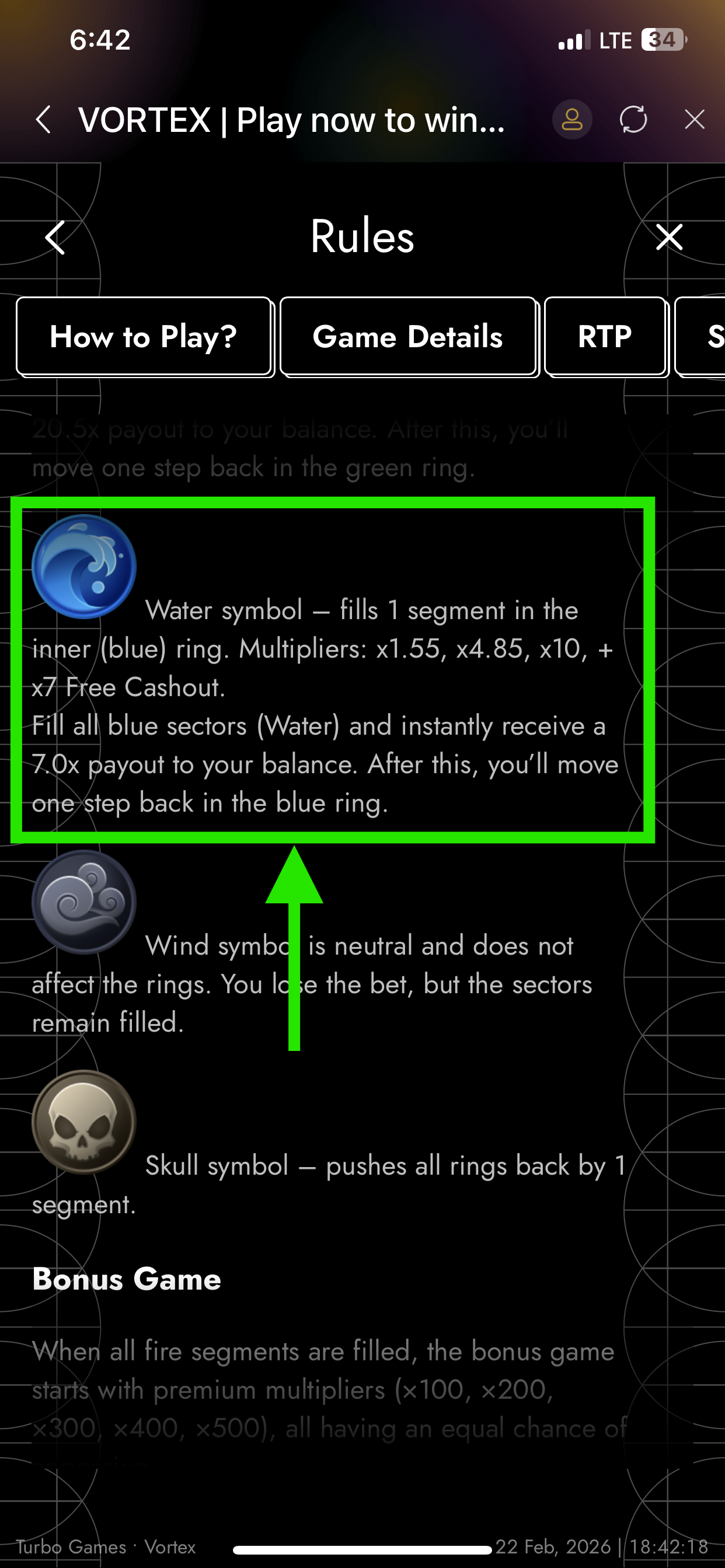 - Water Symbol – fills 1 segment in the inner (blue) ring. Multipliers: x1.55, x4.85, x10, + x7 Free Cashout.