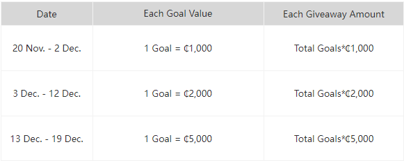 If no goals were scored on the last match day, the amount given out will be equal to the amount distributed the previous day. On the first day of the promotion, ₵1,000 is set as the giveaway amount.