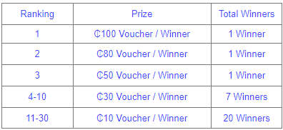 (4) Join the Ranking and get Cash/Voucher prizes according to the accumulated points you obtained.