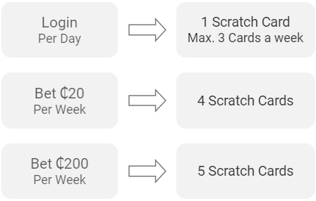 ● STEP 2: Accumulated stake ₵20 on Sports/Virtual/Casino Games to get extra 4 free scratch cards every week.