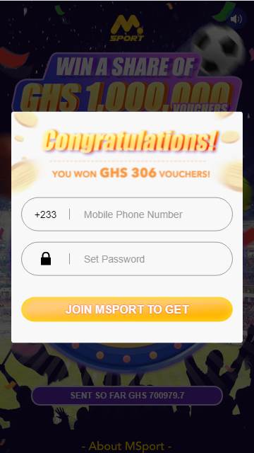 The MSport marketing team has planned a separate campaign for new Ghanaian customers who are subjected to a campaign request SMS to complete registration and recharge and potentially be rewarded with up to GHS 306 vouchers. Only for the new customers who received the invitation SMS, and register through the link in the SMS have the qualification.